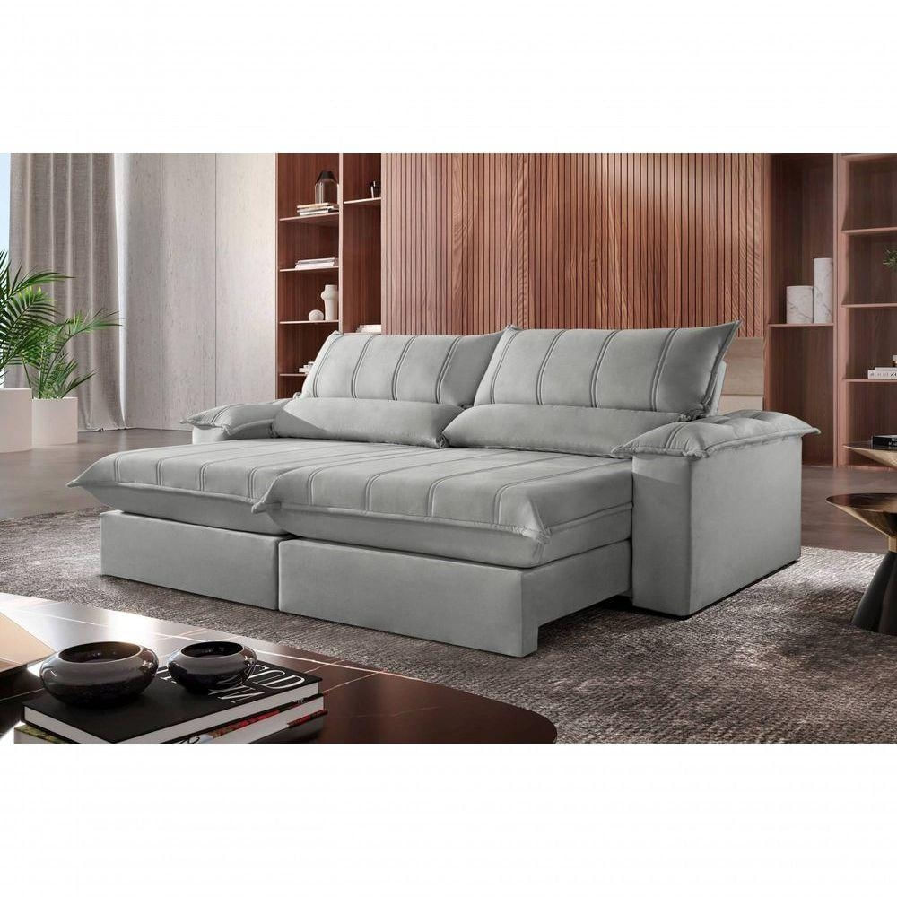 Sofá Genova Retrátil E Reclinável 240m Com Molas Pocket - Prata