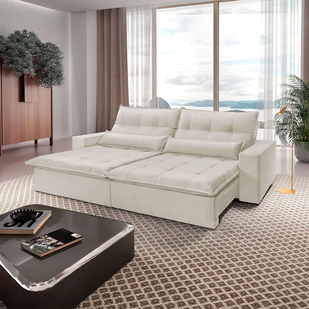 Design diferenciado, qualidade impecavel. A sua sala de estar so esta completa na presenca de um bom sofa e nada mais gostoso do que receber a familia ou curtir os seus momentos de descanso junto com nosso modelo Grecia! Pensado para quem quer aliar bom gosto uma estrutura reforcada para o uso diario, a peca tem madeira na composicao e revestimento de toque agradavel para garantir a qualidade que voce merece. Assento: Retratil com percinta elastica, molas espirais, espuma D-28, pillow de 15 cm, molas ensacadas e matelasse.