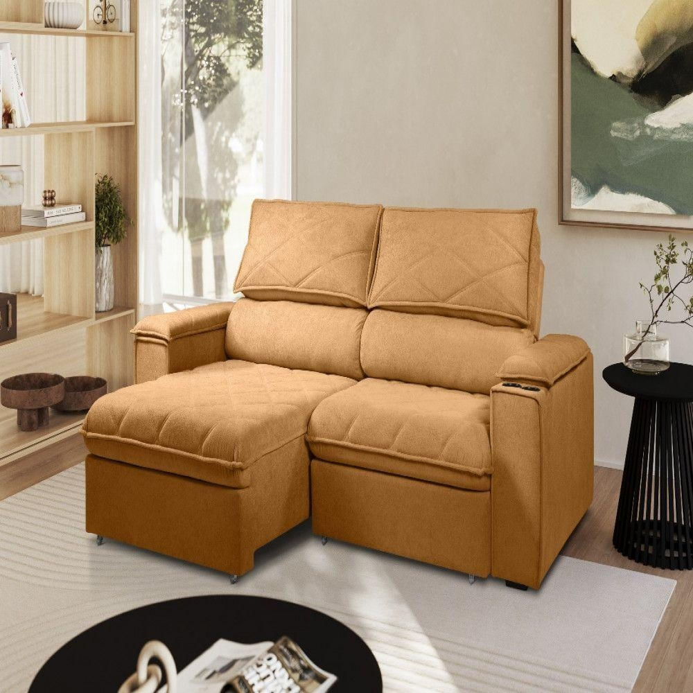 Sofá Konrad Retrátil Reclinável Mônaco 2,10 Metros Bouclê Mostarda Com Preto