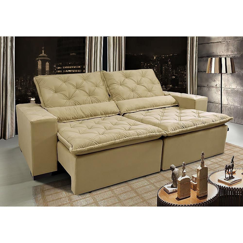 Sofá Lisboa 2,32m Retrátil, Reclinável Com Molas No Assento Tecido Suede Velusoft Bege - Cama Inbox