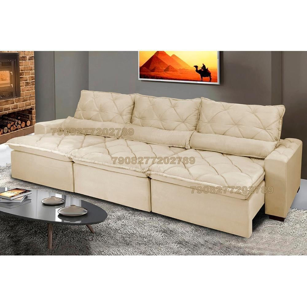 Sofá Lisboa 3,52m Retrátil, Reclinável Com Molas No Assento E Almofadas Lombar Tecido Suede Bege