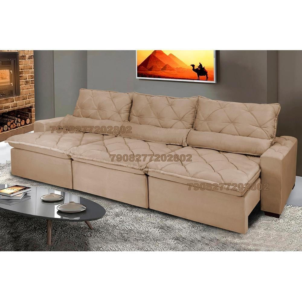 Sofá Lisboa 3,52m Retrátil, Reclinável Com Molas No Assento E Almofadas Lombar Tecido Suede Castor