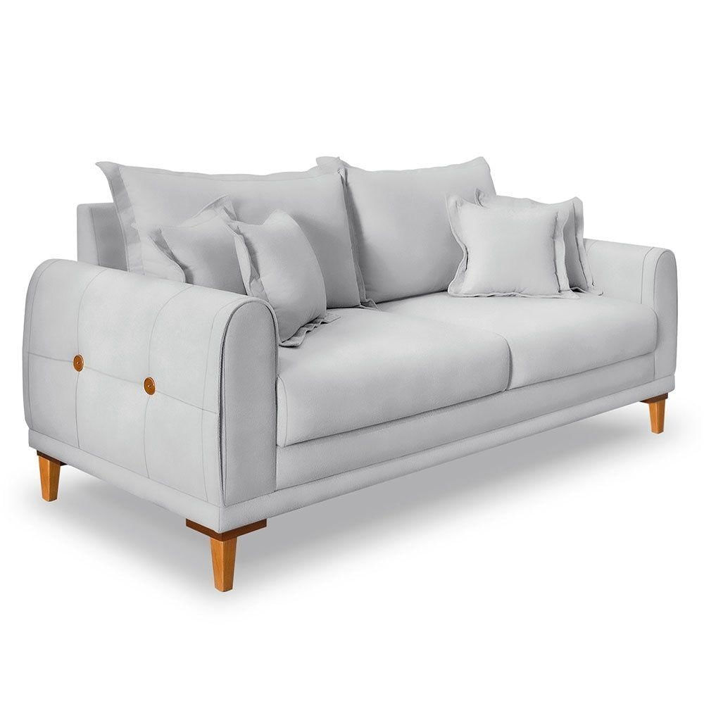 Sofá Living 2 Lugares 1,80m Livia Veludo Pés De Madeira - Pallazio Cor Prata