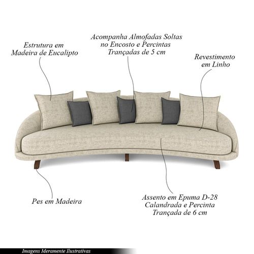 Apresentamos o magnífico Sofá Morales de 265cm, uma verdadeira obra-prima em termos de conforto, estilo e elegância. Com suas dimensões generosas, este sofá foi projetado para proporcionar um espaço amplo e aconchegante para toda a família e convidados. Uma das características mais marcantes deste sofá é o seu design moderno e sofisticado, que certamente se tornará o destaque de qualquer ambiente. Seus estofados luxuosos e macios, juntamente com suas linhas elegantes, adicionam um toque de classe e refinamento ao seu espaço de estar. As almofadas incluídas são perfeitas para relaxar e desfrutar de momentos de tranquilidade. Feitas com materiais de alta qualidade, elas proporcionam um suporte excepcional e são incrivelmente confortáveis. Você poderá se acomodar e desfrutar de horas de descanso e lazer neste sofá incrivelmente acolhedor. Não espere mais para transformar o seu espaço de estar em um ambiente luxuoso e acolhedor. Adquira agora o Sofá Morales e desfrute de momentos inesquecíveis de conforto e elegância. Dimensões do Produto: Largura: 265 cm Altura: 78 cm Profundidade Fechada: 100 cm Altura dos Pés: 15 cm Características do Produto: Material da Estrutura: 100% em Madeira de Eucalipto Assento: Espuma D-28 calandrada e percinta trançada de 6mm Encosto: Com Almofadas Soltas e percintas trançadas de 5mm Material dos Pés: Madeira Tipo de Pés: Fixo Revestimento: Linho Conteúdo da Embalagem: 1 Sofá Necessita de Montagem: Não Instruções/Cuidado: Utilizar um pano levemente umedecido com água, seguido de pano seco. Evitar exposição ao sol, para que o produto não sofra alterações na cor. Não limpar com escovas ou produtos abrasivos.