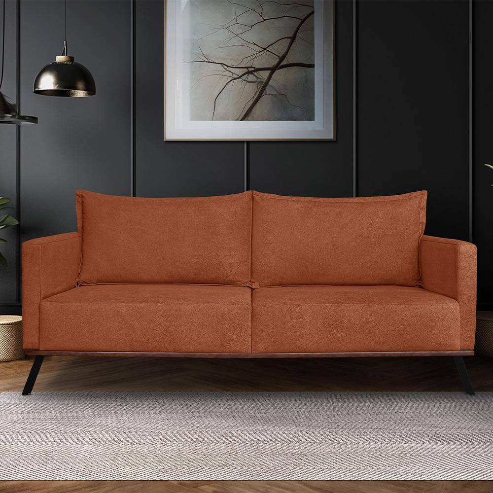 Sofá Living 3 Lugares com Pés de Ferro Almofadas Soltas 220cm Saiph Bouclê Terracota G63 - Gran belo