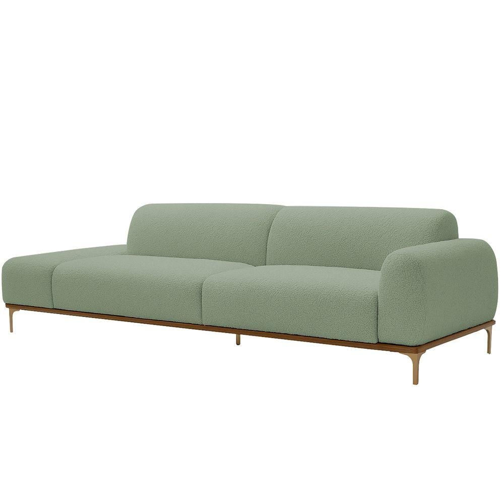 Sofá Living Unne 3 Lugares 210cm Terminal Direito Bouclé Verde Claro - Nexta Casa Cor Verde