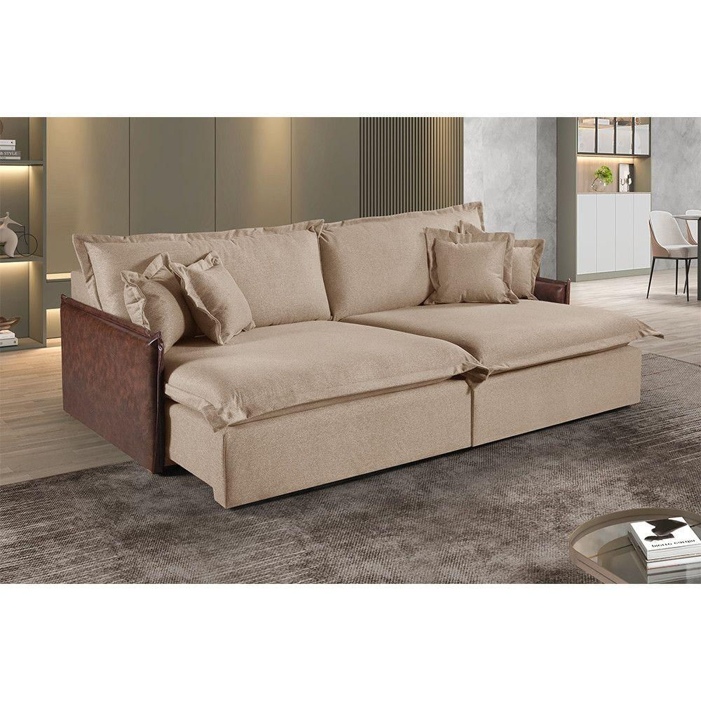 Sofá M-160 Linho 2 Módulos 100cm Braço 7cm Estofados Martins Linho Bege Mesclado