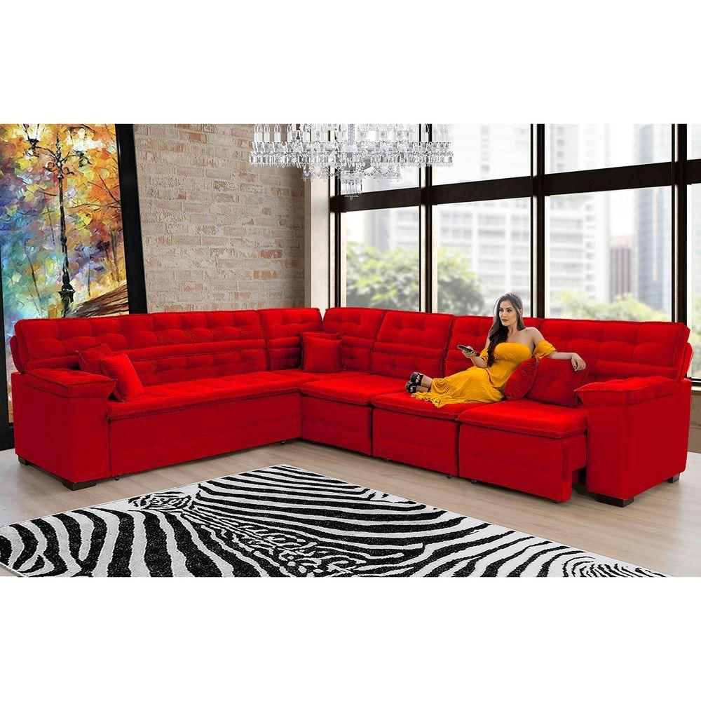 Sofá Magno 2.37x3.97m De Canto, Retrátil E Reclinável Vermelho