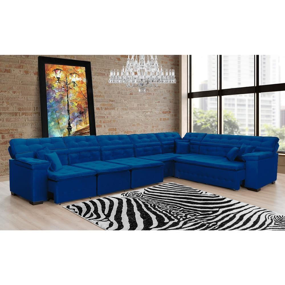 Sofá Magno 2.37x4.57m De Canto, Retrátil E Reclinável Azul