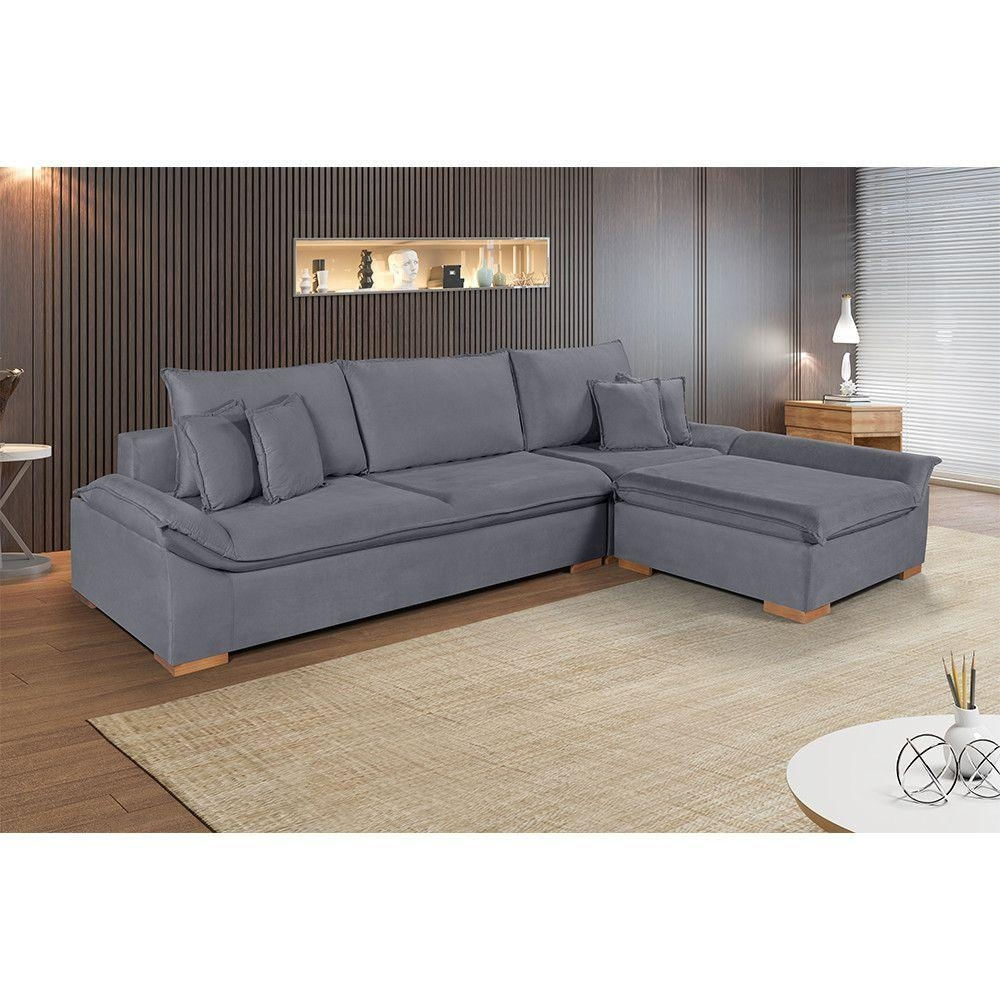 Sofá Martins M-201 Veludo Canto Invertido Estofados Martins Veludo Cinza Escuro