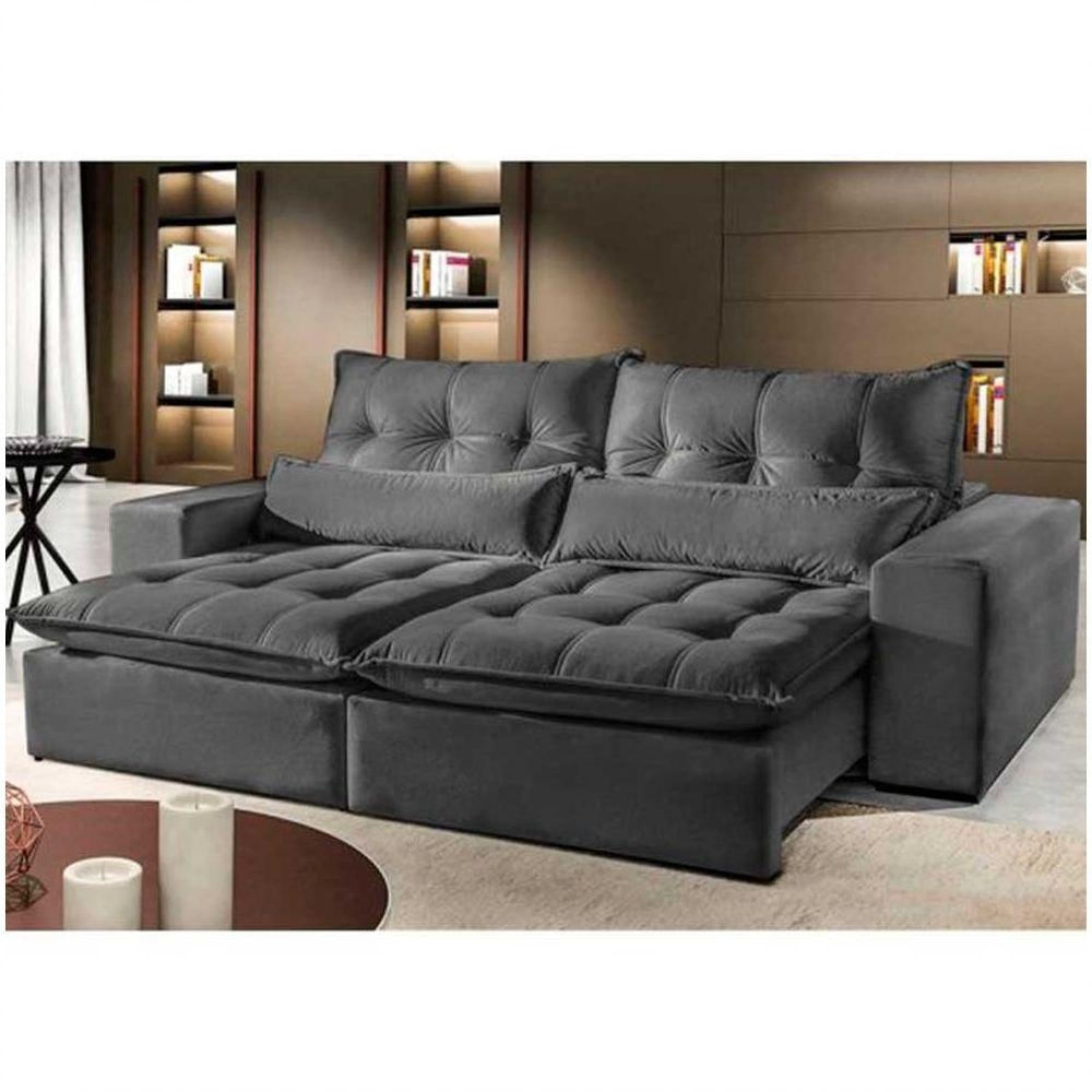 Sofá Máximo 2 Lugares Retrátil Reclinável 2.10m Veludo Mundial Estofados Cinza Profundo