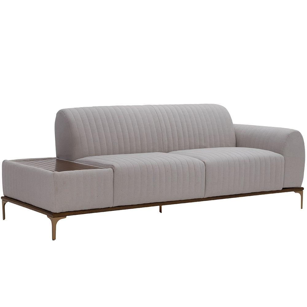 Sofá Molino com Mesa Estofada – Conforto e Praticidade com Elegância Um design funcional e sofisticado que combina estilo, conforto e versatilidade em um só ambiente.Descrição do ProdutoO Sofá Molino com Mesa Estofada eleva o conceito de conforto e funcionalidade a um novo patamar. Com um design moderno e imponente, ele se destaca como a peça central de qualquer ambiente, agora com uma prática mesa estofada integrada — perfeita para apoiar objetos, livros ou decorações, adicionando um toque extra de estilo e praticidade. Suas costuras em linhas retas formam um contraste elegante com o desenho em gomos, unindo razão e emoção em uma peça que transforma sua sala em um espaço acolhedor, sofisticado e funcional.Características TécnicasEstrutura: Madeira reflorestada de eucalipto, com partes em MDF e OSB – robustez e sustentabilidadeAssento: Espuma D-26 HR sobre percintas elásticas – conforto firme e duradouroEncosto: Espuma D-23 sobre percintas elásticas – apoio ergonômicoBraços: Espuma D-23 – maciez e suporteMesa: Estrutura em madeira de eucalipto com bordas estofadas e tampo envernizadoBase/Pés: Madeira de eucalipto envernizada com pés em alumínio com pintura epóxiCor da Base/Pés: Castanho Natural / CromadoPeso Suportado: Até 100 kg por assentoMedidasAltura Total: 78 cmLargura Total (com mesa estofada): 230 cmProfundidade Total: 90 cmPeso: 80 kgAltura do Encosto: 40 cmAltura do Assento ao Chão: 46 cmAltura do Braço: 20 cmAltura dos Pés: 18 cmLargura Livre do Assento: 145 cmProfundidade Livre do Assento: 55 cmLargura do Braço: 25 cmLargura da Mesa Estofada: 40 cmProfundidade da Mesa Estofada: 90 cmDiferenciaisMesa estofada integrada – praticidade para apoiar objetos com estiloDesign moderno com acabamento em gomos – sofisticação únicaAssento bipartido – maior conforto e estéticaCuidadosLimpeza com pano levemente umedecido com água, seguida de pano seco.Evitar exposição prolongada ao sol para preservar a cor e textura do tecido.Não utilizar produtos abrasivos ou escovas rígidas.Garantia03 meses contra defeitos de fabricaçãoObservações Necessita de montagem simples, fixação da base. Quantidade de volumes: 03. As imagens são ilustrativas; a tonalidade pode variar conforme a configuração da tela. Certifique-se de que o local de instalação permite a passagem do produto. Não nos responsabilizamos por montagem, desmontagem, instalações ou transporte por escadas/elevadores.