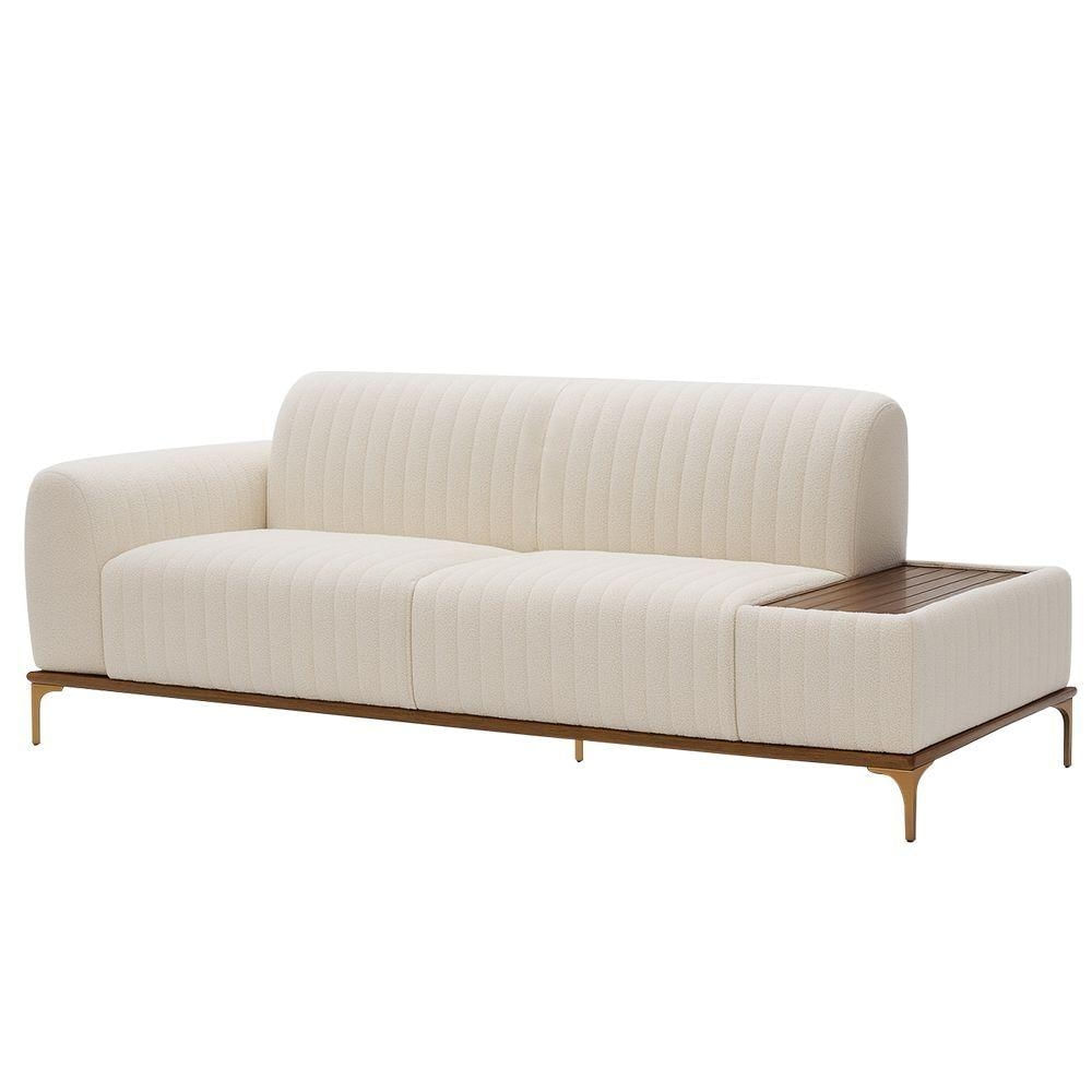 Sofá Molino 3 Lugares 210cm C/mesa Auxiliar Esquerdo Pés Ouro.f Bouclé Off White - Nexta Casa