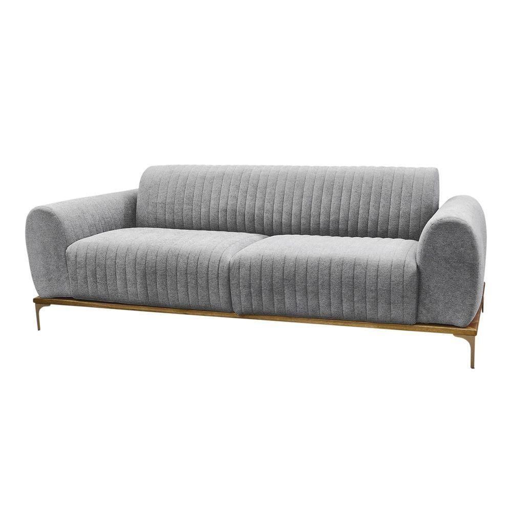Sofá Molino – Conforto e Elegância em Harmonia Um design imponente que combina sofisticação e bem-estar para transformar seu ambiente.Descrição do ProdutoO Sofá Molino é a definição de um refúgio perfeito para relaxar. Com um design imponente e contemporâneo, ele se destaca como a peça central de qualquer ambiente, unindo conforto excepcional e sofisticação. Suas costuras em linhas retas criam um contraste elegante com o desenho de gomos, refletindo a perfeita harmonia entre razão e emoção. Ideal para quem valoriza beleza e funcionalidade, o Molino transforma sua sala em um espaço acolhedor e estiloso.Características TécnicasEstrutura: Madeira reflorestada de eucalipto, com partes em MDF e OSB – robustez e sustentabilidadeAssento: Espuma D-26 HR sobre percintas elásticas – conforto firme e duradouroEncosto: Espuma D-23 sobre percintas elásticas – apoio ergonômicoBraços: Espuma D-23 – maciez e suporteRevestimento: Tecido Bouclé – visual sofisticado e fácil de manterBase/Pés: Madeira de eucalipto envernizada com pés em alumínio com pintura epóxiCor da Base/Pés: Castanho Natural / Ouro FoscoPeso Suportado: Até 120 kg por assentoMedidasAltura Total: 78 cmLargura: 210 cmProfundidade: 90 cmPeso: 80 kgAltura do Encosto: 40 cmAltura do Assento ao Chão: 46 cmAltura do Braço: 20 cmAltura dos Pés: 18 cmLargura Livre do Assento: 160 cmProfundidade Livre do Assento: 55 cmLargura do Braço: 25 cmDiferenciaisDesign moderno com acabamento em gomos – sofisticação únicaBase de madeira reforçada – garantia de durabilidadeCuidadosLimpeza com pano levemente umedecido com água, seguido de pano seco.Evitar exposição prolongada ao sol para preservar a cor do tecido.Não usar produtos abrasivos ou escovas rígidas.Garantia3 meses contra defeitos de fabricaçãoObservações Necessita de montagem simples, fixação da base. Quantidade de volumes: 2 Imagens ilustrativas; a tonalidade pode variar devido à configuração da tela. Certifique-se de que o local de instalação permite a passagem do produto. Não nos responsabilizamos por montagem, desmontagem, instalações ou transporte por escadas/elevadores.