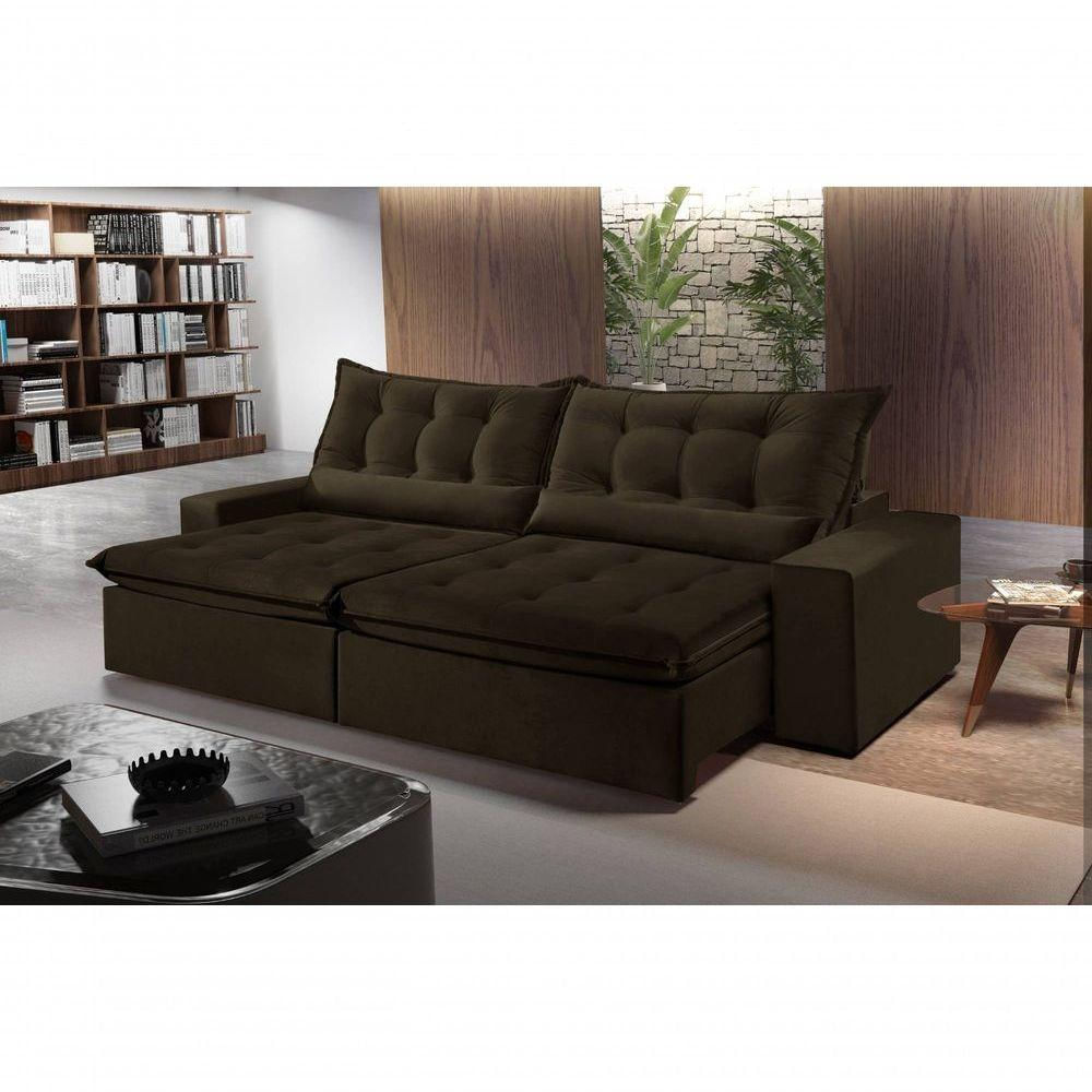 Sofá Montebello Retrátil E Reclinável 250cm Com Pillow E Molas Ensacadas - Marrom