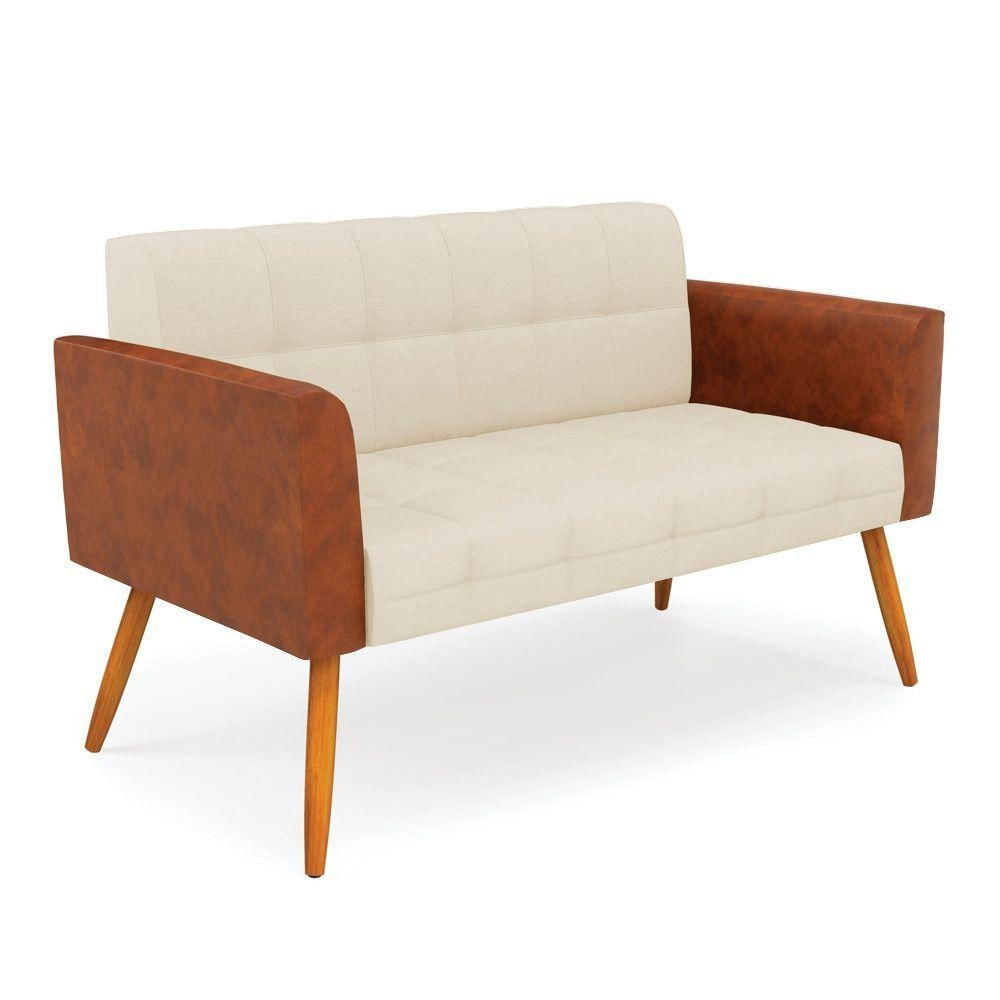 Sofá Namoradeira 2 Lugares Pés Palito Castanho Elisa Nozes/linho Bege A19 D03 - D'rossi