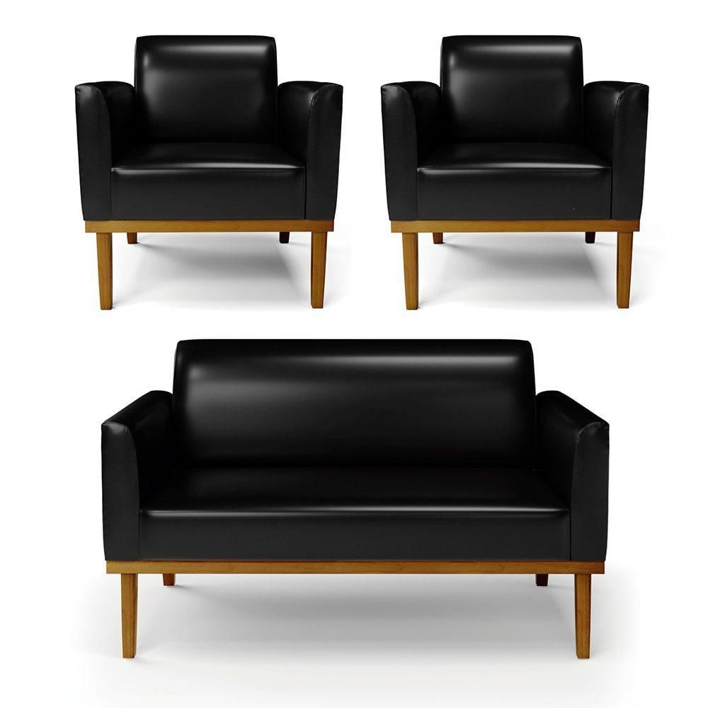 Sofá Namoradeira Com 2 Poltronas Base De Madeira Fixa Castanho Marisa Corano Preto D03 - D?rossi