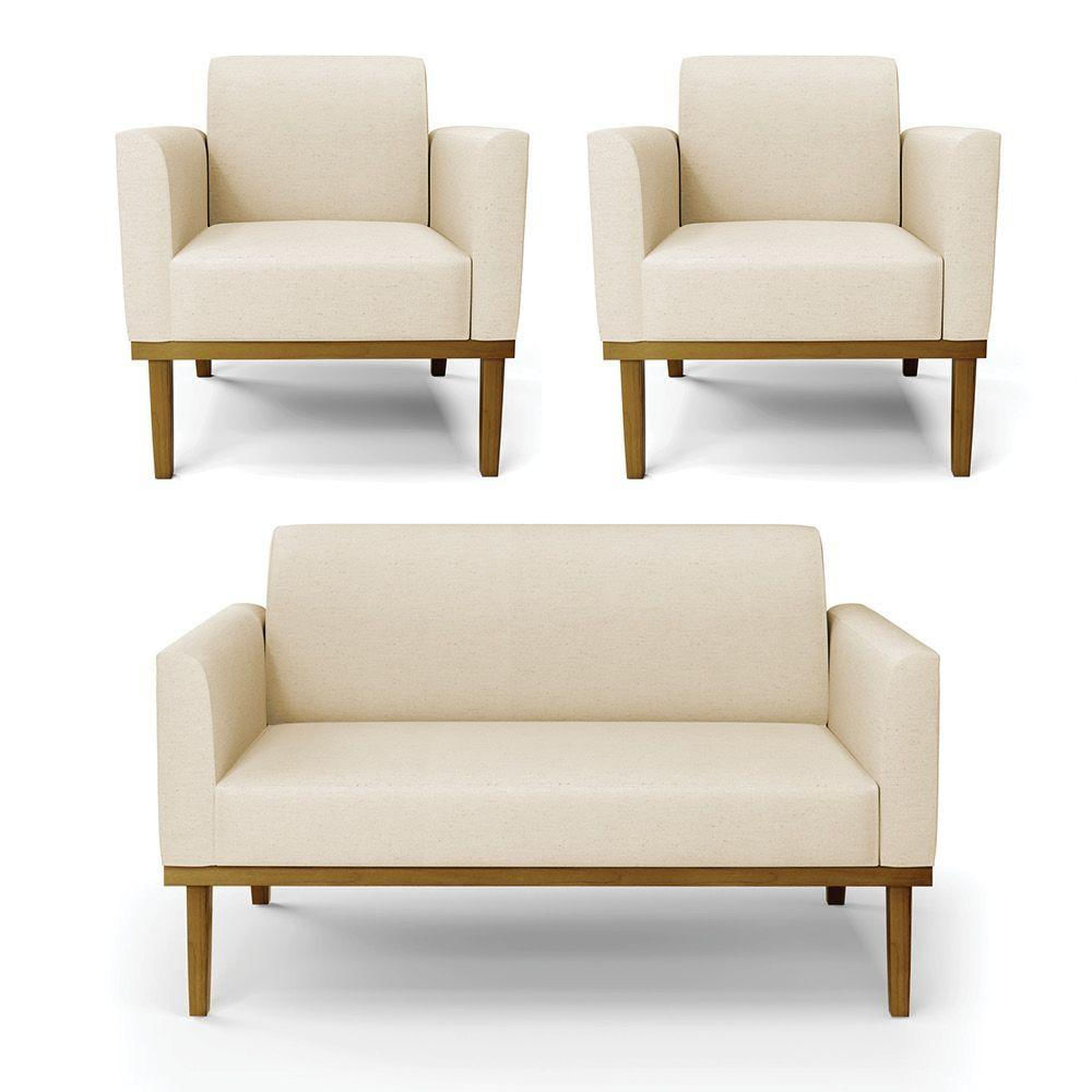 Sofá Namoradeira Com 2 Poltronas Base De Madeira Fixa Castanho Marisa Linho D03 - D'Rossi A19 Bege