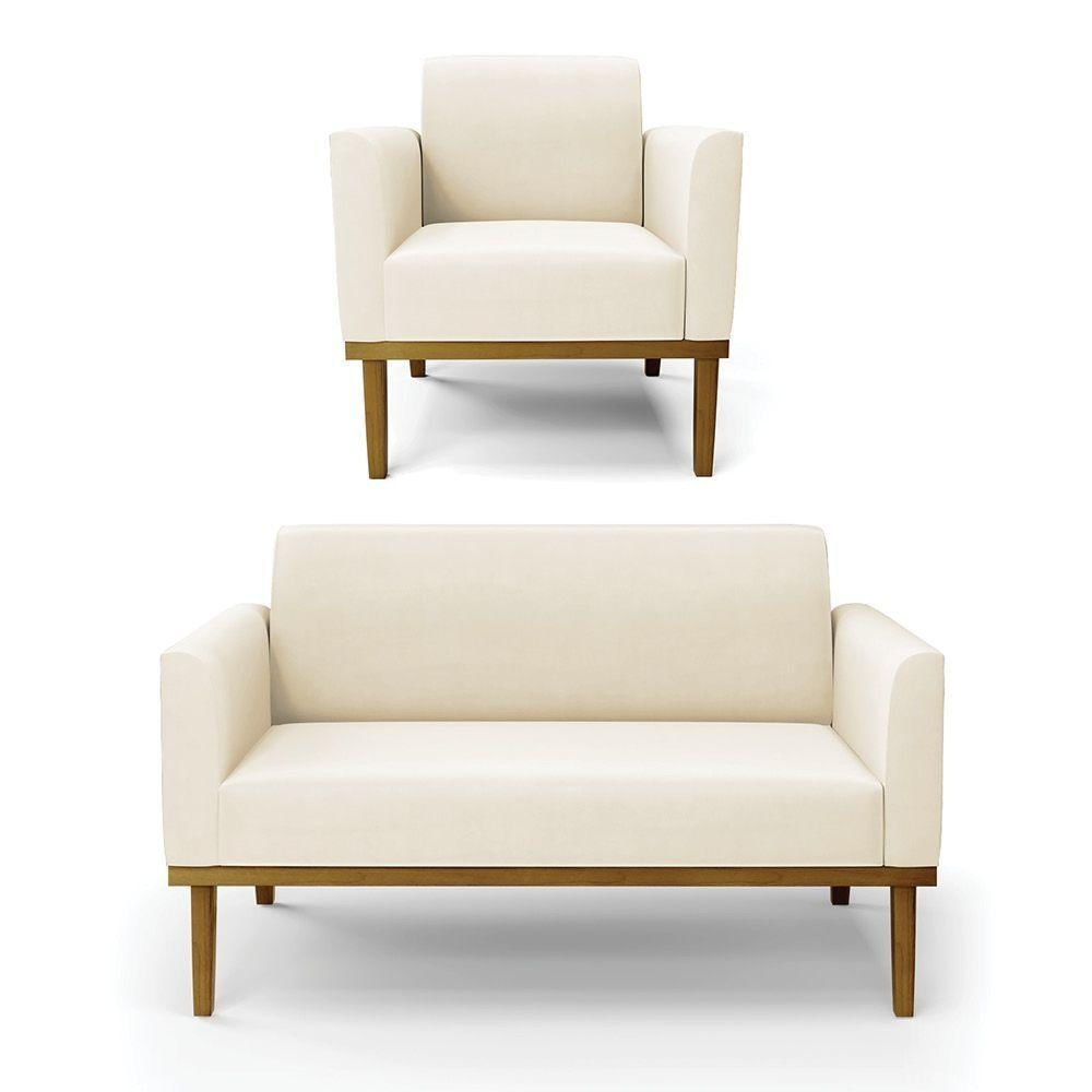 Sofá Namoradeira Com Poltrona Base De Madeira Fixa Castanho Marisa Veludo Bege D03 - D?rossi