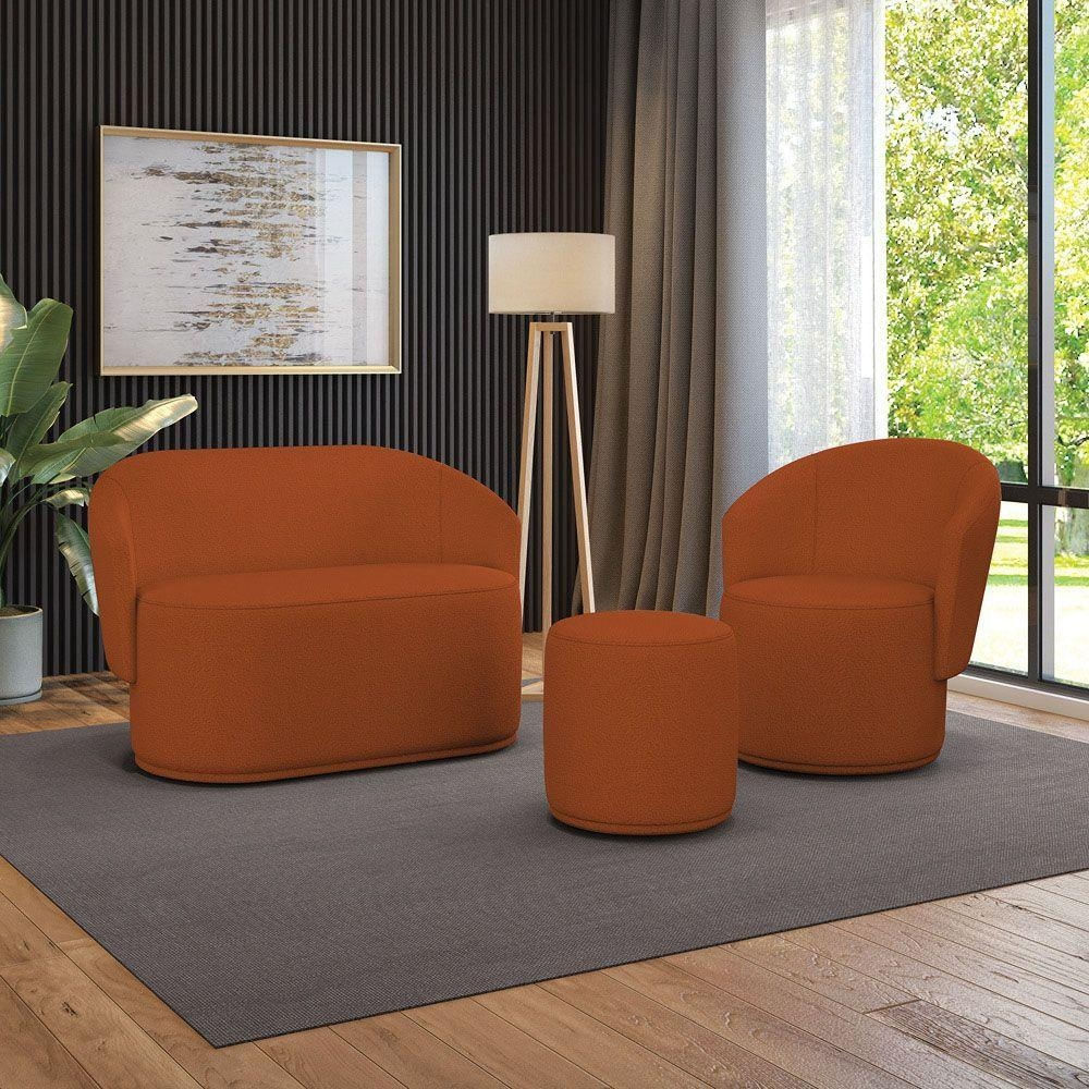 Sofá Namoradeira Com Poltrona E Puff Orgânico Sala Malu Bouclê M11 - D'rossi Terra