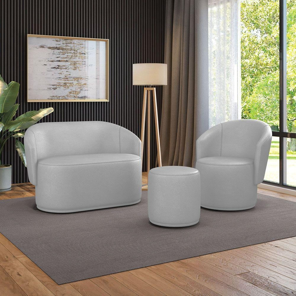 Sofá Namoradeira Com Poltrona E Puff Orgânico Sala Malu Sintético M11 - D'rossi Cinza