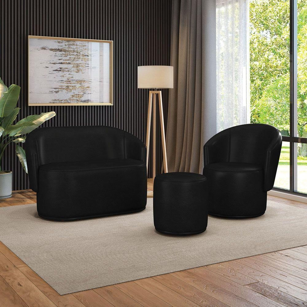 Sofá Namoradeira Com Poltrona E Puff Orgânico Sala Malu Sintético Pu M11 - D'rossi Preto