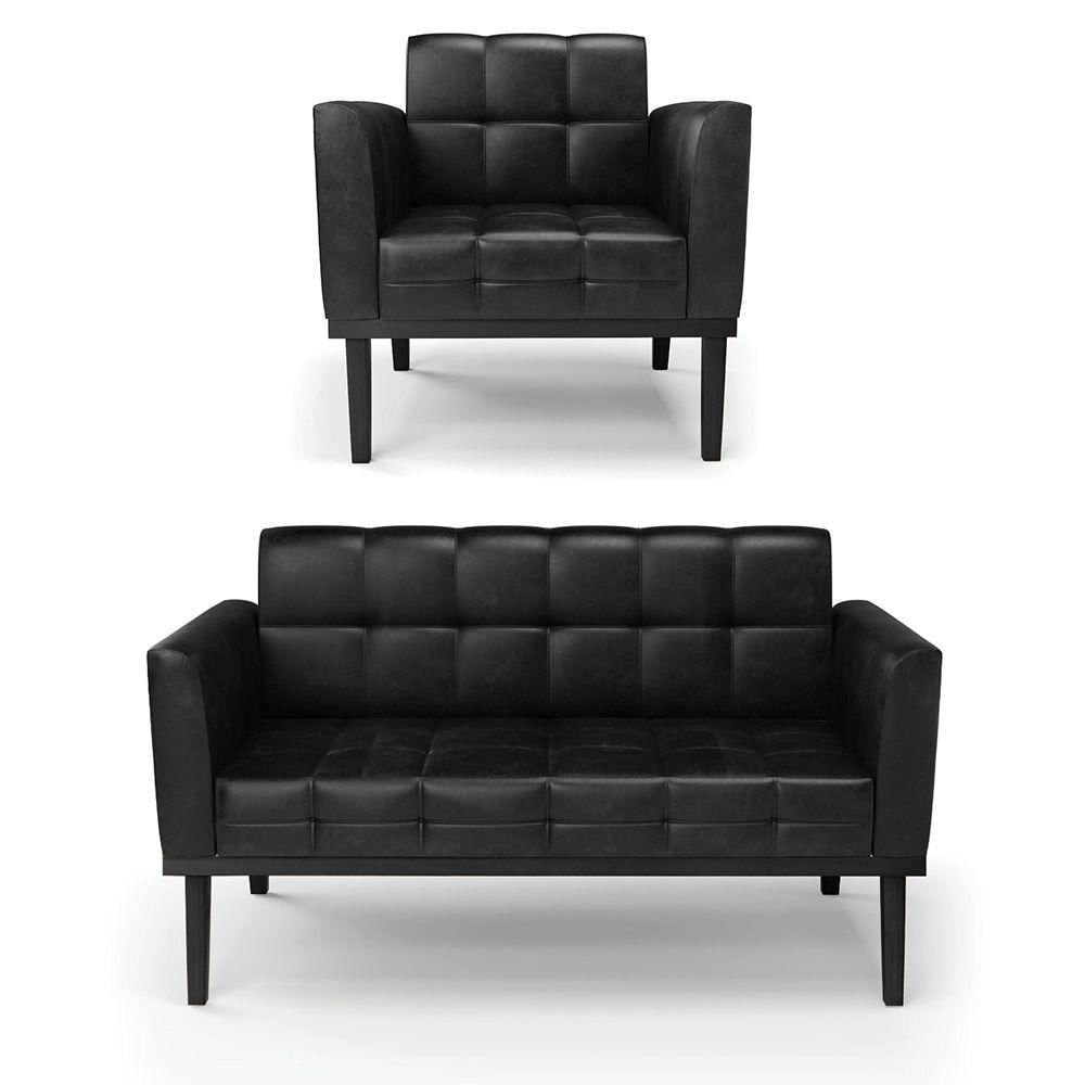 Sofá Namoradeira E 2 Poltronas Base De Madeira Preto Elisa Corano D03 - D'rossi Cor Preto