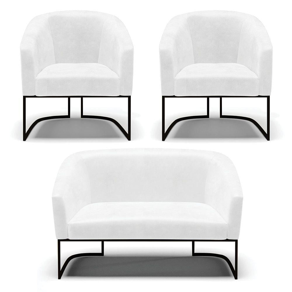 Sofá Namoradeira E 2 Poltronas Base Industrial Preto Stella Corano D03 - D'rossi Cor Branco