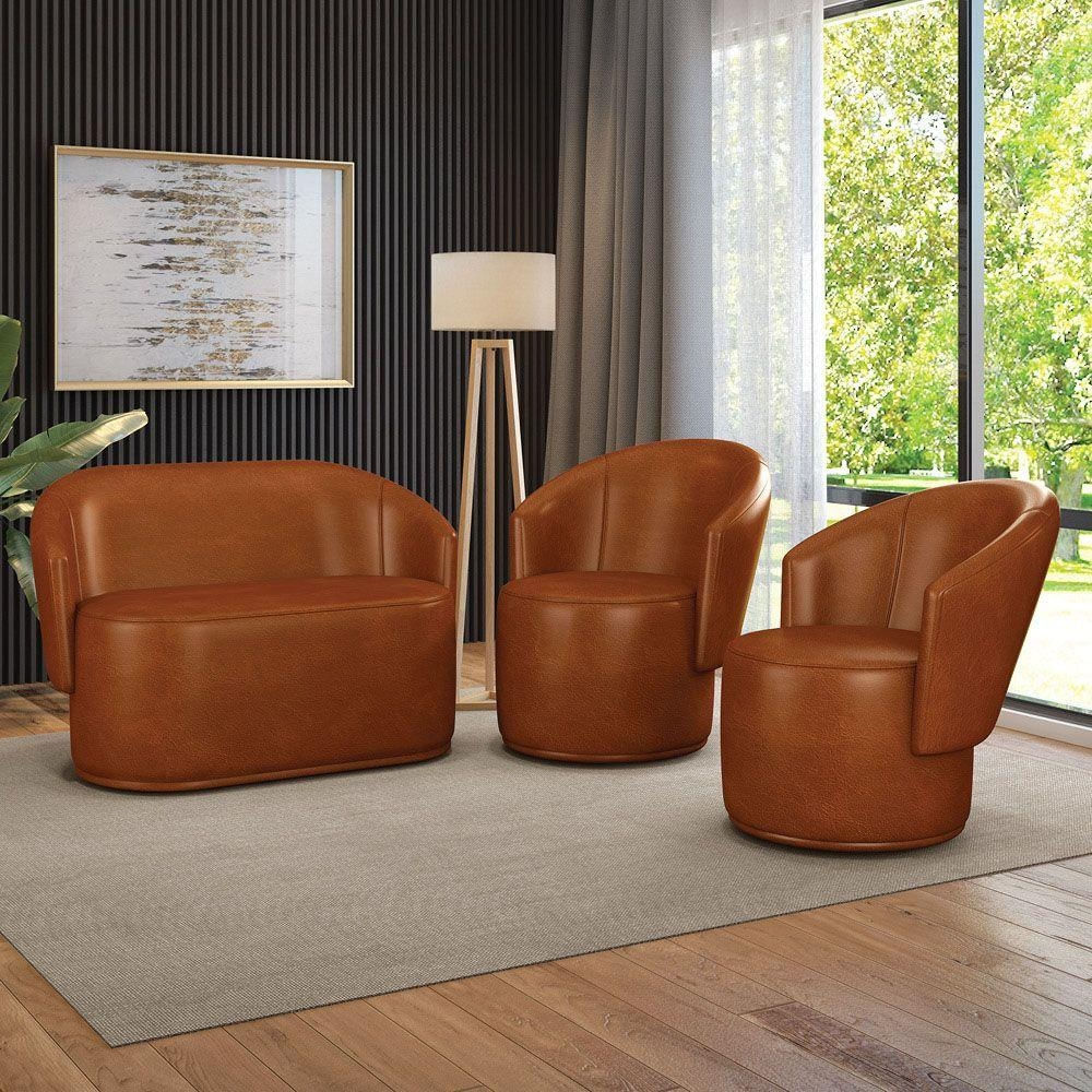 Sofá Namoradeira E 2 Poltronas Orgânica Para Sala Malu Sintético Pu M11 - D'rossi Nozes