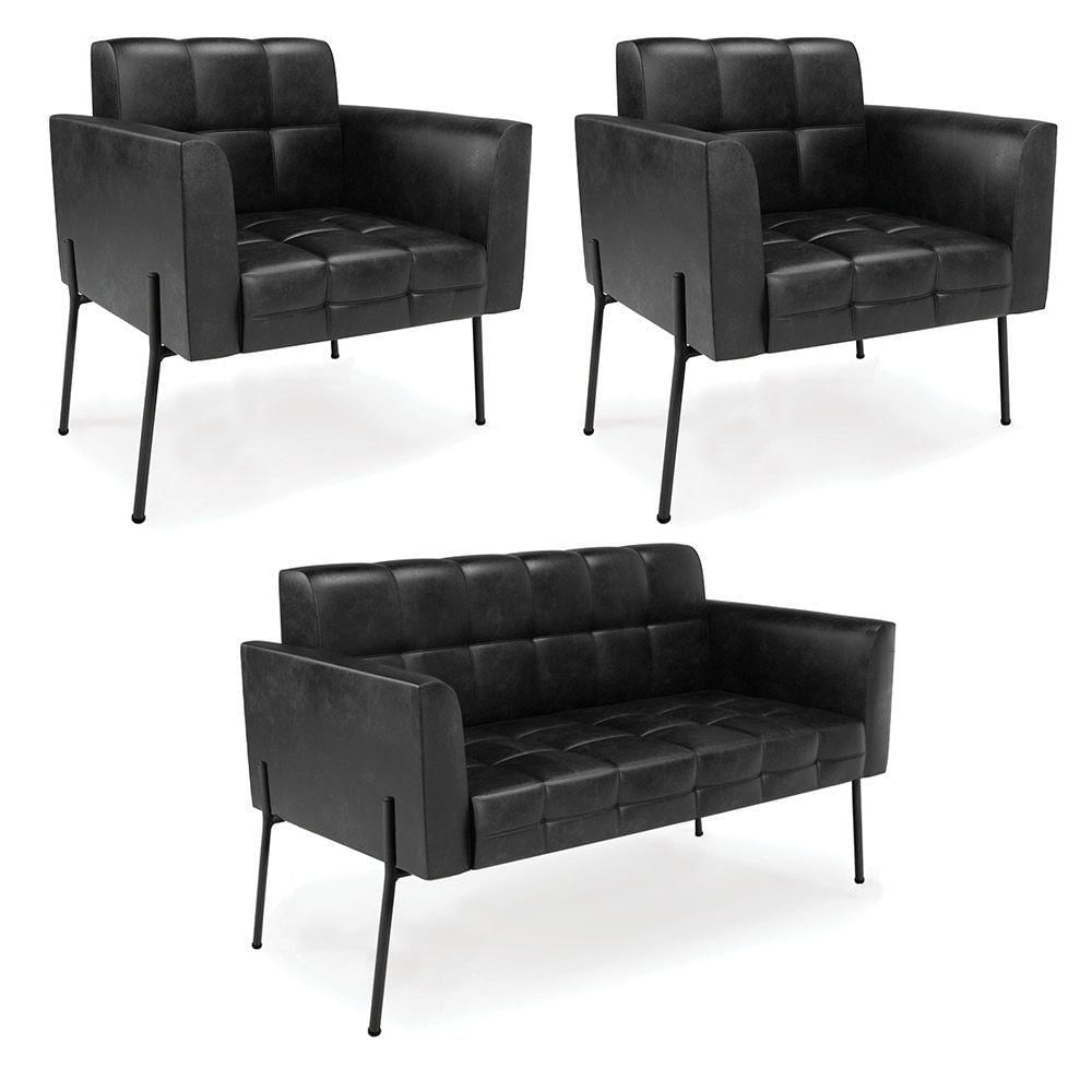 Sofá Namoradeira E 2 Poltronas Pé De Ferro Preto Elisa Corano D03 - D'rossi Cor Preto