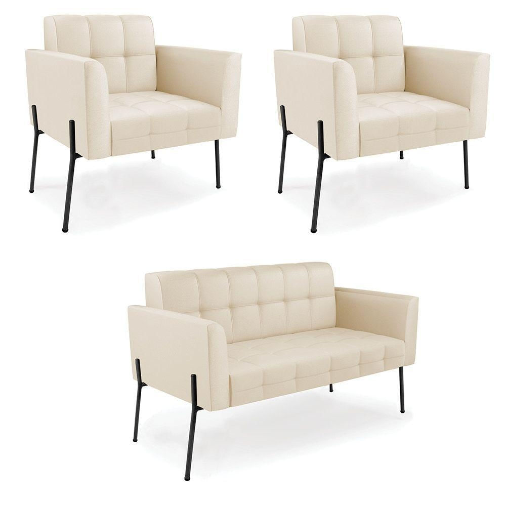 Sofá Namoradeira E 2 Poltronas Pé De Ferro Preto Elisa Corino D03 - D'rossi Cor Bege