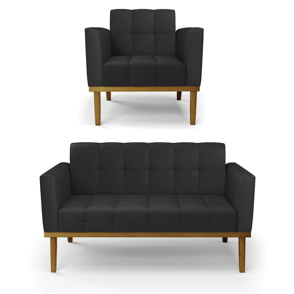 Sofá Namoradeira E Poltrona Base De Madeira Castanho Elisa Corino Preto D03 - D'rossi
