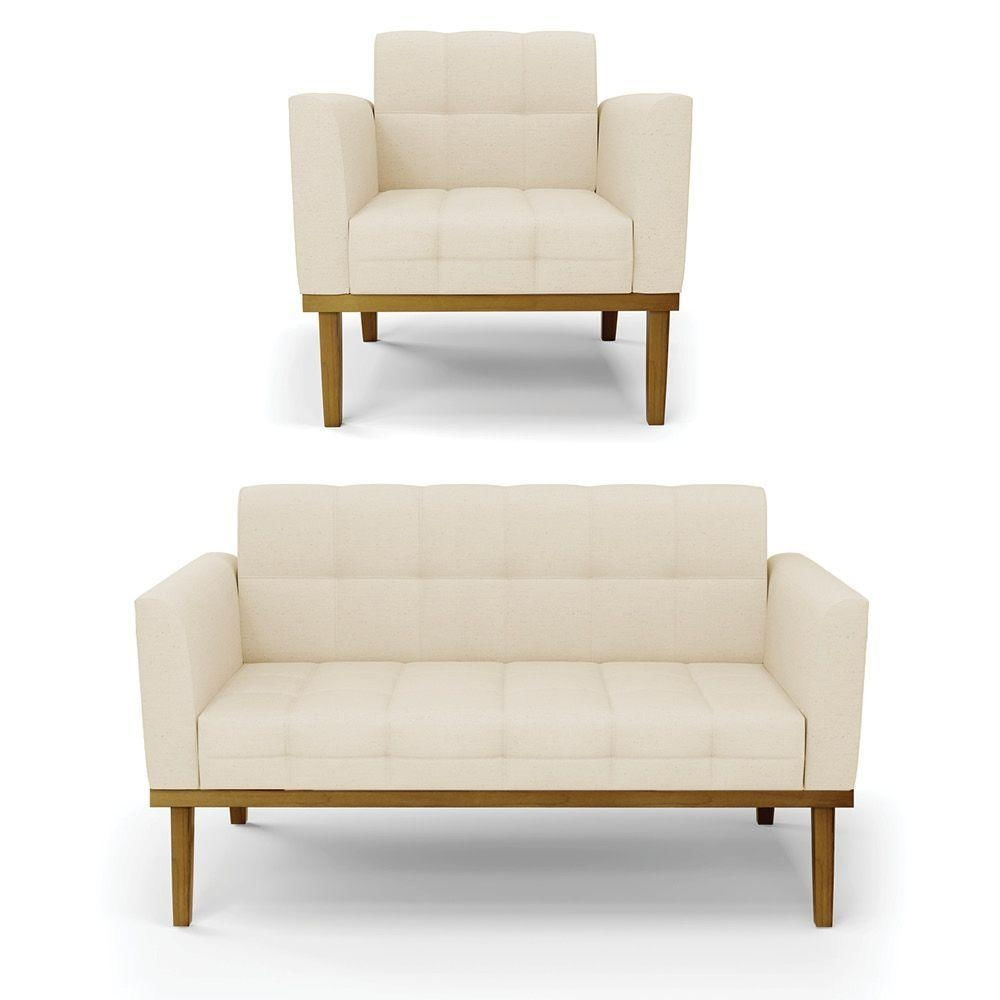Sofá Namoradeira E Poltrona Base De Madeira Castanho Elisa Linho D03 - D'rossi Cor A19 Bege