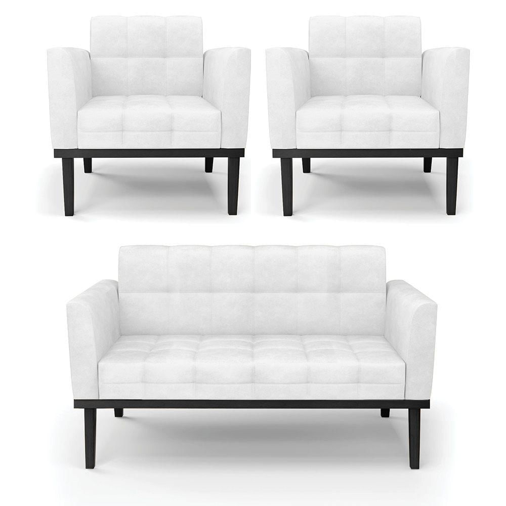 Sofá Namoradeira E Poltrona Base De Madeira Preto Elisa Corano D03 - D'rossi Cor Branco