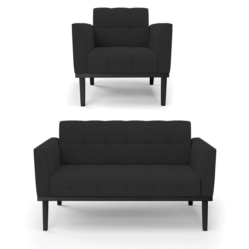 Sofá Namoradeira E Poltrona Base De Madeira Preto Elisa Veludo D03 - D'rossi Cor Preto