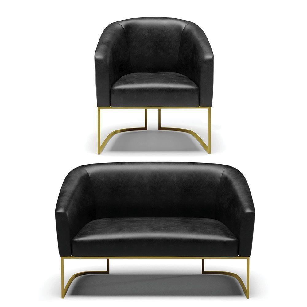 Sofá Namoradeira E Poltrona Base Industrial Dourado Stella Corano Preto D03 - D'rossi