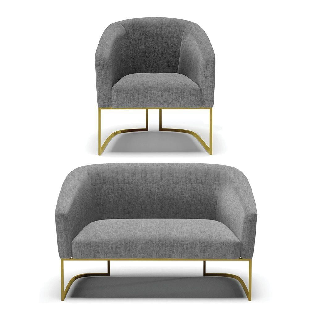 Sofá Namoradeira E Poltrona Base Industrial Dourado Stella D03 - D'rossi Cor A79 Preto