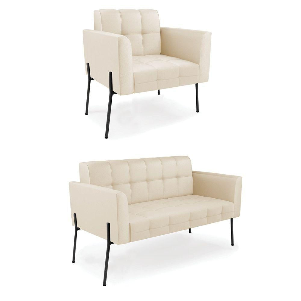 Sofá Namoradeira E Poltrona Base Pé De Ferro Preto Elisa Corino Bege D03 - D'rossi