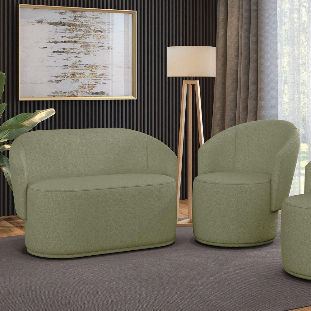 Sofá Namoradeira E Poltrona Orgânica Para Sala Malu Bouclê Pistache M11 - D'rossi