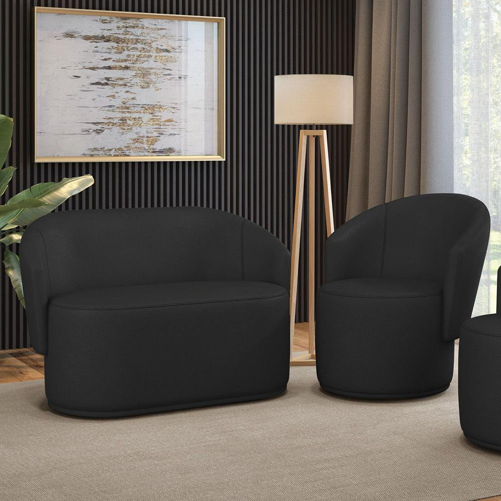 Sofá Namoradeira E Poltrona Orgânica Para Sala Malu Sintético M11 - D'rossi Preto