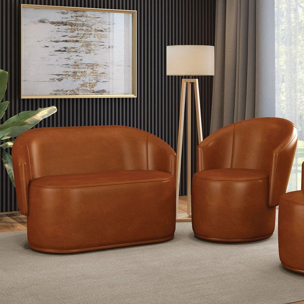 Sofá Namoradeira E Poltrona Orgânica Para Sala Malu Sintético Pu Nozes M11 - D'rossi