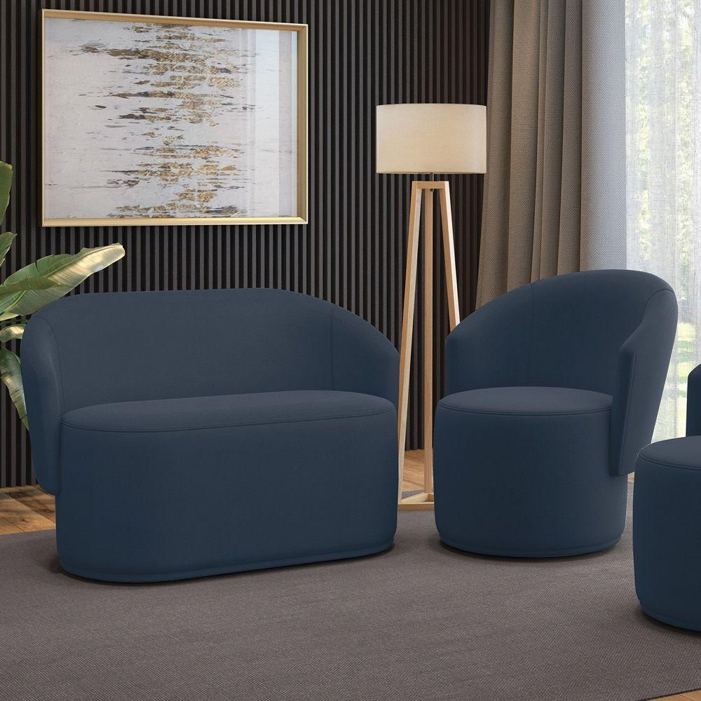 Sofá Namoradeira E Poltrona Orgânica Para Sala Malu Suede M11 - D'rossi Azul Marinho