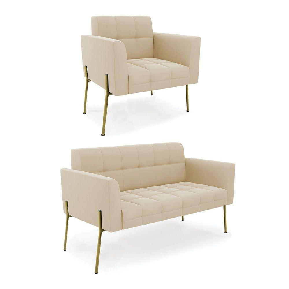 Sofá Namoradeira E Poltrona Pé De Ferro Dourado Elisa Suede Bege D03 - D'rossi