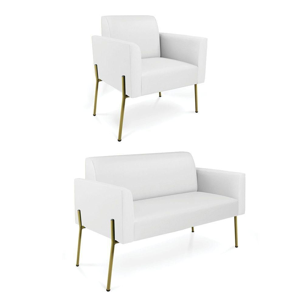 Sofá Namoradeira E Poltrona Pé De Ferro Dourado Marisa Corino D03 Branco