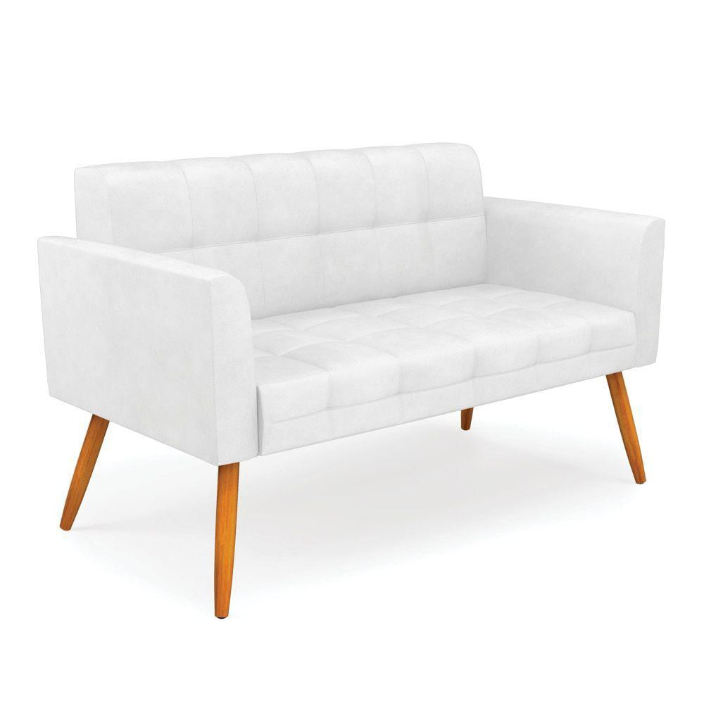 Sofá Namoradeira Elisa Corano Pés Palito Castanho - D'rossi Cor Branco