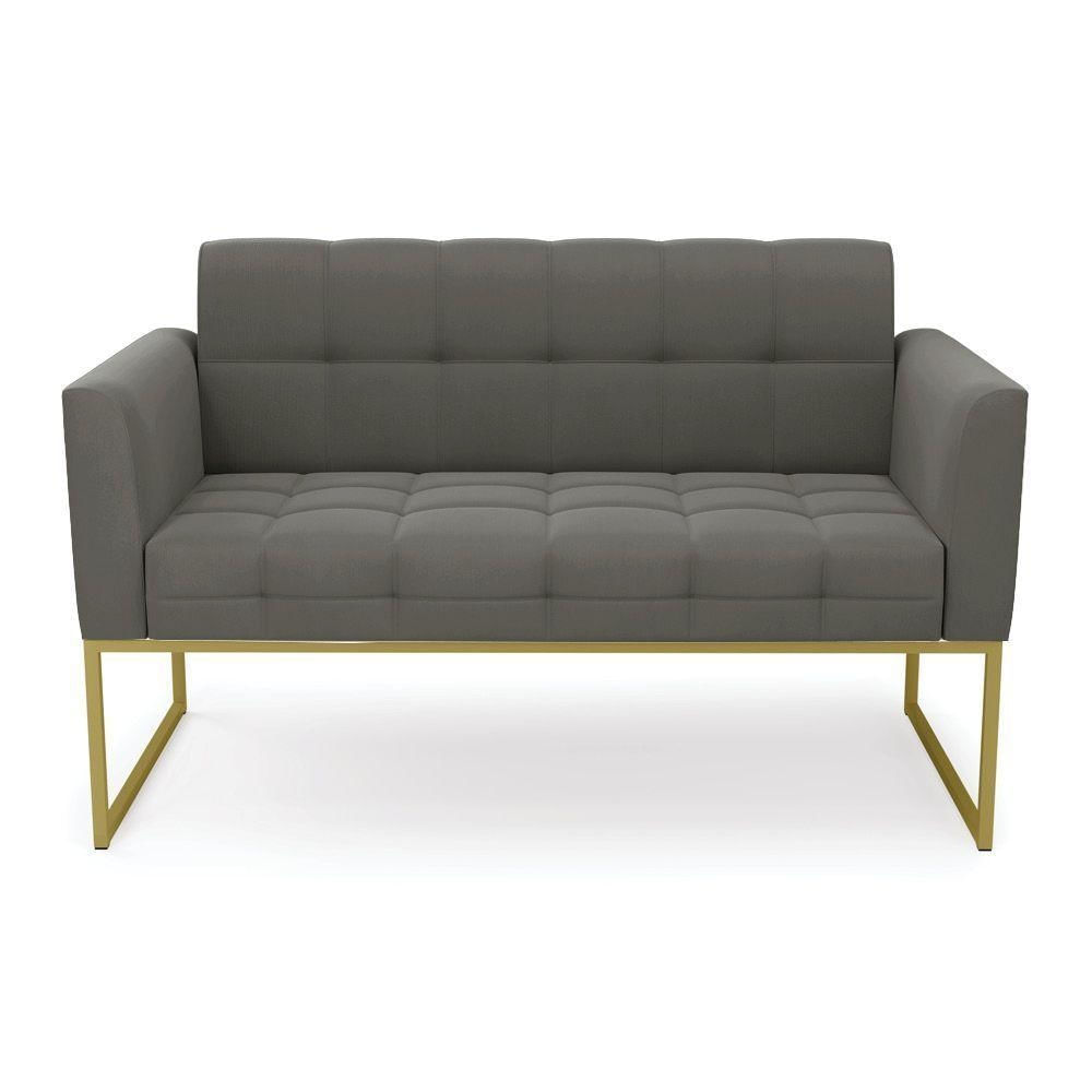 Sofá Namoradeira Elisa Suede Grafite Base Metálica Industrial Dourada - D'rossi