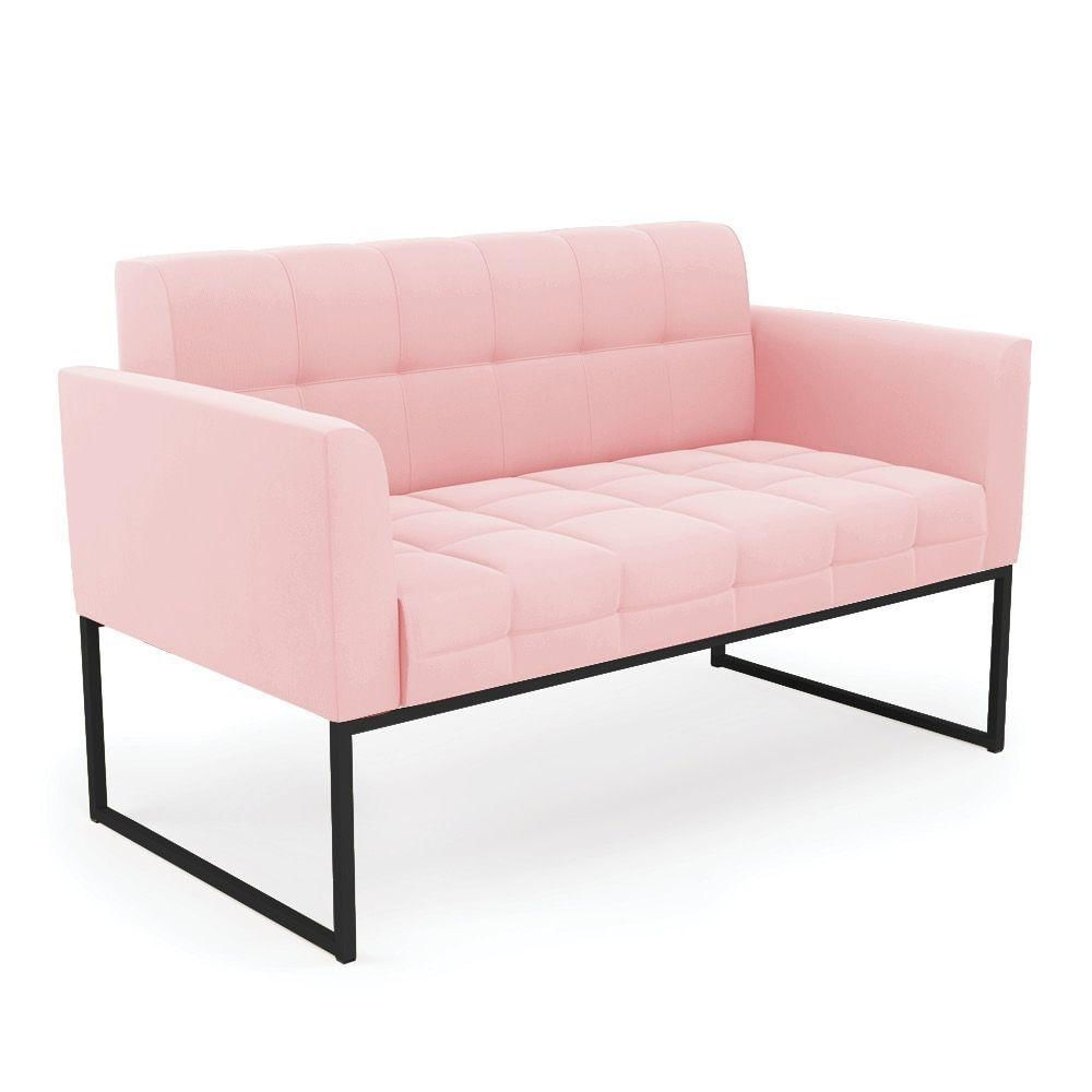 Sofá Namoradeira Elisa Suede Rosa Bebê Base Metálica Industrial Preto - D'rossi