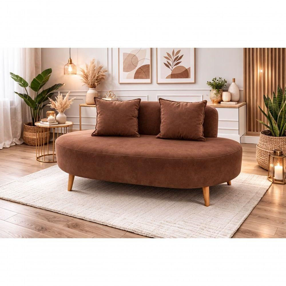 Sofá Orgânico Feijão Para Sala Quarto Closet 115 Cm Com 02 Almofadas Tecido Suede Marrom Eli Móveis E Decoração