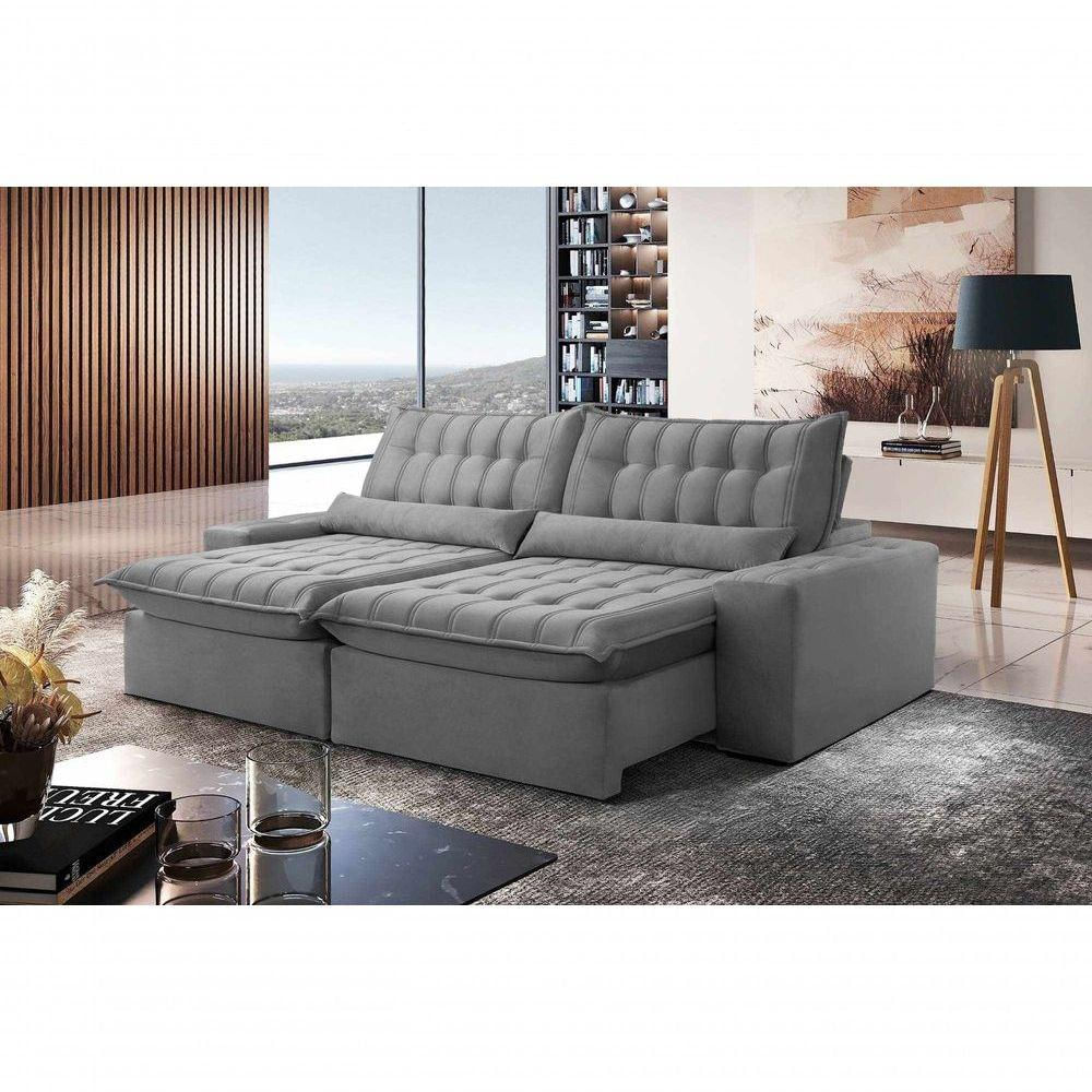 Sofá Petra Retrátil E Reclinável 250cm Espuma D-26 Softy - Grafite