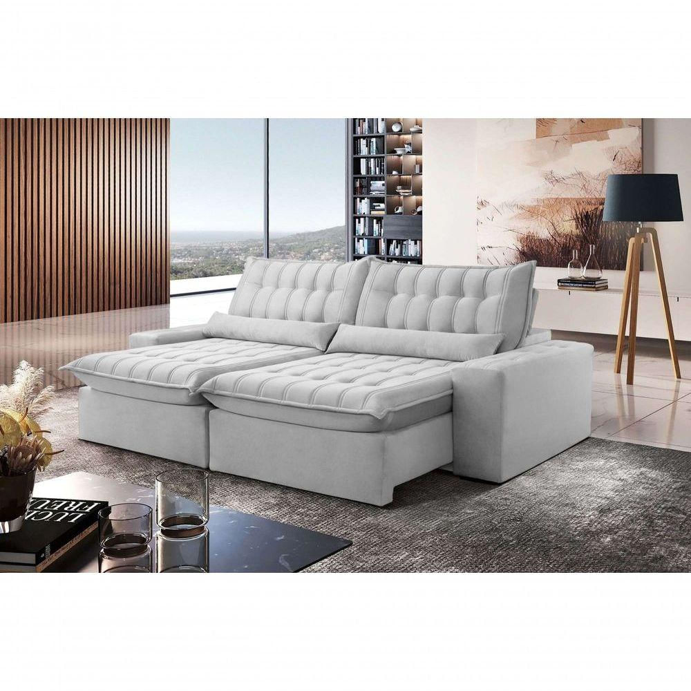 Sofá Petra Retrátil E Reclinável 250cm Espuma D-26 Softy - Prata